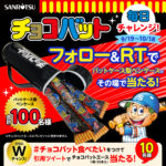 2023.10.11 Twitter ⚾バットケース型ペンケースがその場で当たる✨チョコバットXキャンペーン⚾ Yu Izumisawa 当たるもの バットケース型ペンケースが100名に当たる🎁 Wチャンス!「 #チョコバット食べたい 」で引用RT⚾✨ 当選人数 100名 応募方法 ①三立製菓株式会社公式Xアカウント(@sanritsuseika)をフォロー ②対象の投稿をリポスト(RT) ※毎日更新されています。 ③結果は自動返信 応募締め切り 2023/10/18 応募はこちらから #2023年10月締切#その場で当たる#チョコバット#文房具#非売品